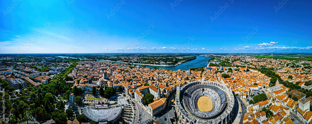The aerail view of Arles, a city on the Rhône River in the Provence region of southern France