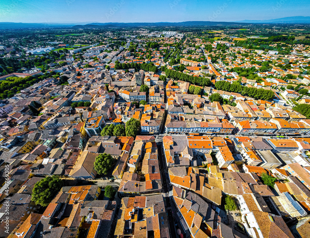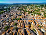 The aerial view of Orange, an old Roman city in the Vaucluse department in the Provence-Alpes-Côte d'Azur region in Southeastern France