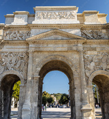 The street view of Orange, an old Roman city in the Vaucluse department in the Provence-Alpes-Côte d'Azur region in Southeastern France