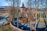 Debno, Poland. Medieval wooden Gothic church of the Saint Archangel Michael, built in 15th century, still active, with the oldest wooden polychrome in Europe inside. UNESCO World Heritage Site