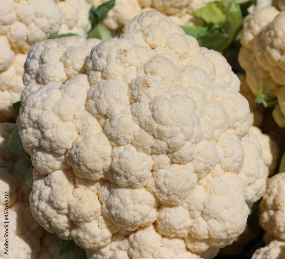 Cauliflower is one of several vegetables in the species Brassica oleracea in the genus Brassica, which is in the Brassicaceae (or Mustard) family vegetables on stand in market