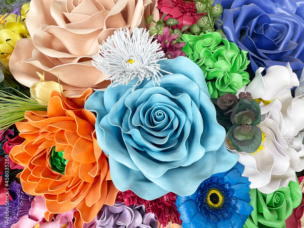 Polymer clay decorative flowers bouquet background.