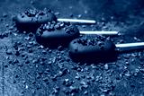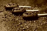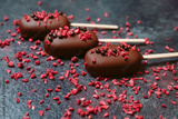 Chocolate bars are sprinkled with freeze-dried raspberries.