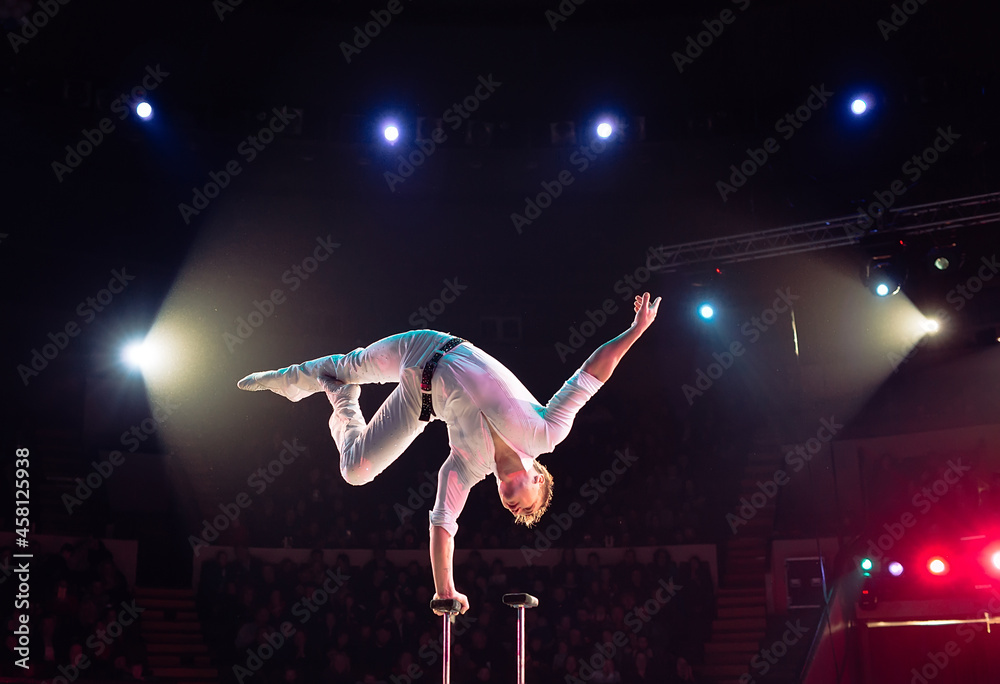 Man's aerial acrobatics in the Circus.