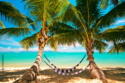 Hängematten unter Palmen an Tropischem Strand von Koh Samui