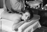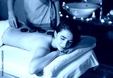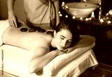 Spa, massage. Young dark-haired beautiful girl doing massage.