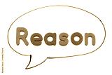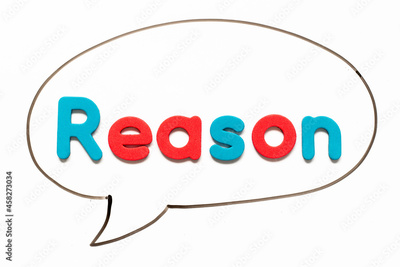 Letter in word reason and speech banner on white background