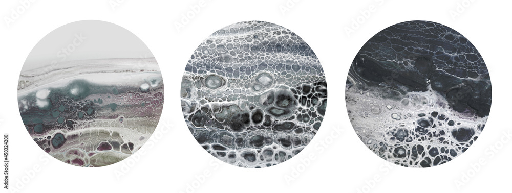 Marble texture. Acrylic color blots. Abstract background. Interior circle triptych.