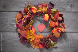 autumn wreath on a wooden door, DIY crafts from fallen leaves, ideas for autumn interior decoration