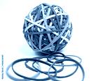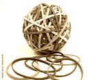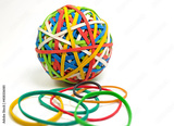 Viele bunte Gummibänder zum Ball geformt