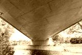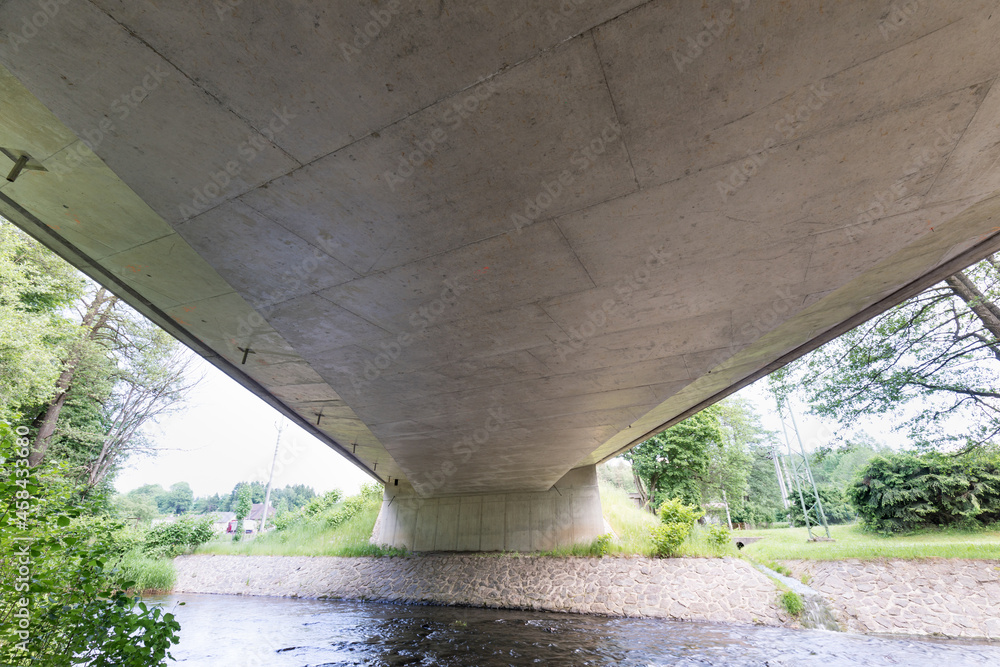 A new bridge across a small river. Summer time. Small reinforced concrete bridge after reconstruction. New asphalt.