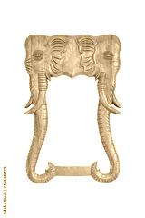 Wooden frame carved elephant head isolated on white background with clipping path include for design usage purpose.