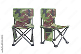 Folding chair for camping in camouflage pattern isolated on white background, clipping path included use for graphic design.