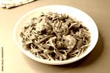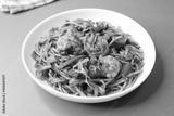Chinese cuisine, Prawns Chilli garlic noodles. Stir fry noodles with vegetables and shrimp. served in a white plate. Hakka noodles With copy space.