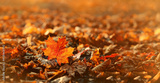bright fallen leaves on abstract sunny natural background. orange maple leaf symbol of autumn. fall season concept. autumn forest lanscape. copy space. banner