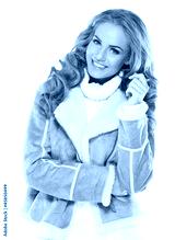 Cute woman wearing modern winter fur jacket