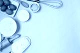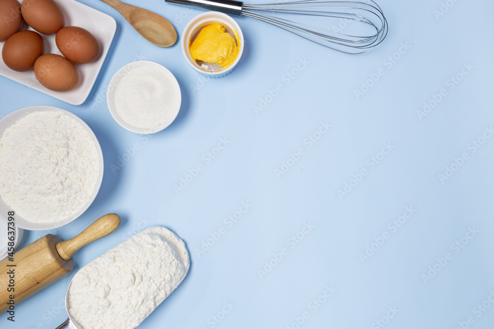 food ingredients on a blue background