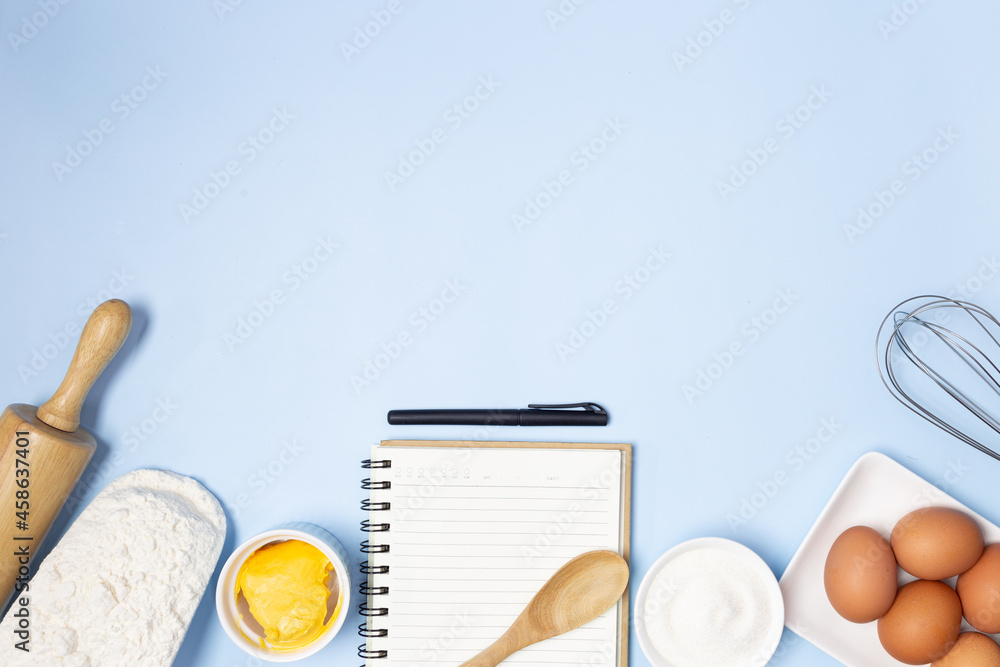 food ingredients on a blue background