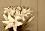 lily flowers on wooden planks