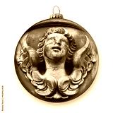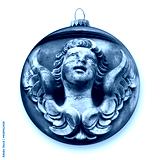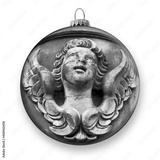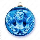 Old sculpture of a wooden angel in blue Christmas ball concept concept