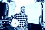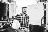 Portrait of an electrician happy worker at work
