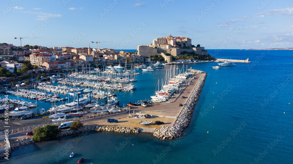 Aerial view of the Citadel of Calvi in Upper Corsica - French maritime stronghold in the Mediterranean Sea with defensive walls