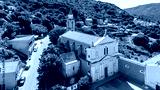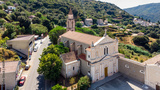 Aerial view of the Convent of Saints Cosimo and Damian of Sartène in the mountains of the South of Corsica, France - Regional capital, Sartène is mostly made of granite buildings