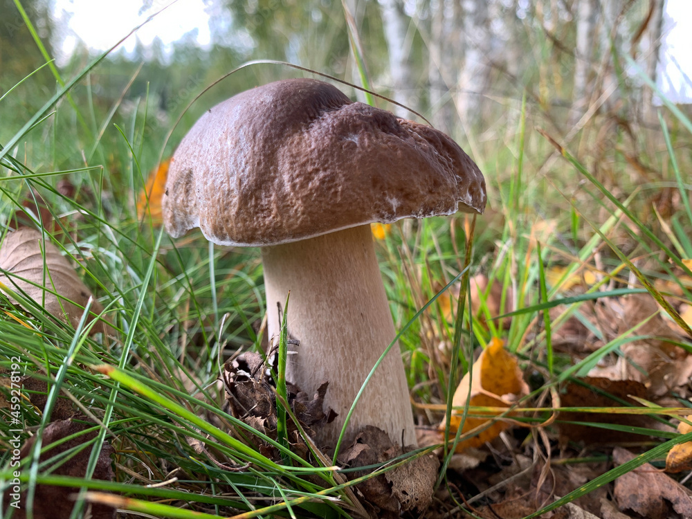 Cep, white mushroom or boletus - with brown cap one in the forest