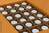 glass bottles in a cardboard box with partitions for transporting broken items.