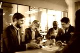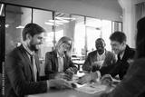 startup business team on meeting in modern bright office interior brainstorming, working on laptop and tablet computer.