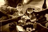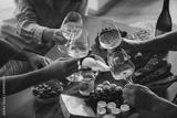 Friends having wine tasting or celebrating event with wine