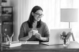 young woman working at home