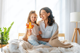 girl and mother enjoying sunny morning
