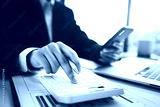 A young woman's hand presses a calculator to determine and summarize the cost of mortgage home loans for refinancing plans, lifestyle concepts.