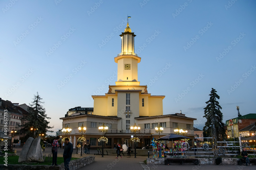 Ivano-Frankivsk City Hall Building in the Art Deco style in Ivano-Frankivsk, UKRAINE, September 2021