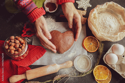 Cooking Christmas gingerbread.Making chocolate chip cookie dough for Christmas. Dough for Christmas. Cooking gingerbread for the new year. DIY gingerbread.Cookie Christmas Gingerbread Together