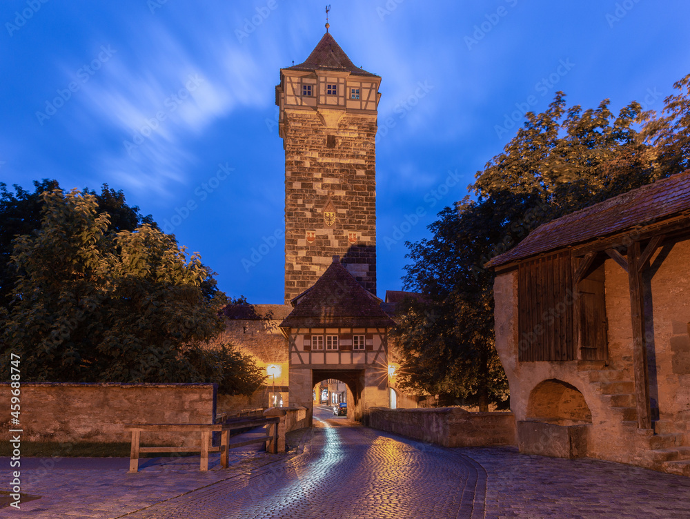 Rothenburg ob der Tauber. Old famous medieval at sunset.