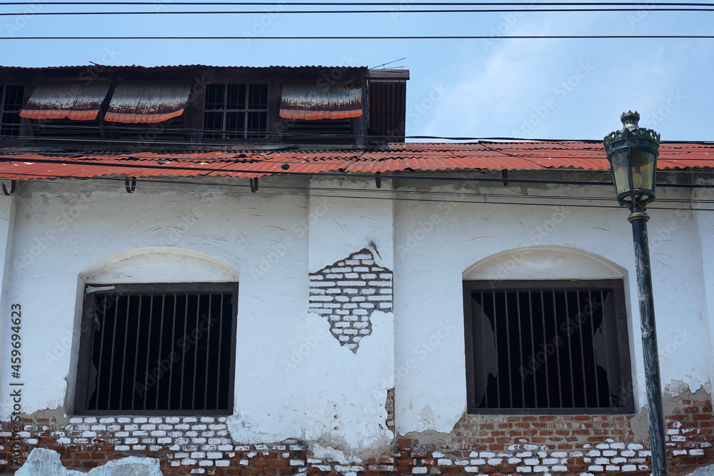 Walls and windows of an old colonial building in the Kota Lama area, Semarang