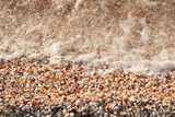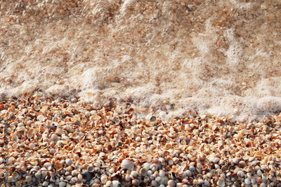 Beautiful seascape with beautiful sea waves and sea foam on shore with sea water on beach by sea