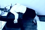 Crime scene (imitation). Strangled teacher in the classroom...