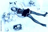 Strangled beautiful woman in a bedroom. Simulation of the crime scene.............