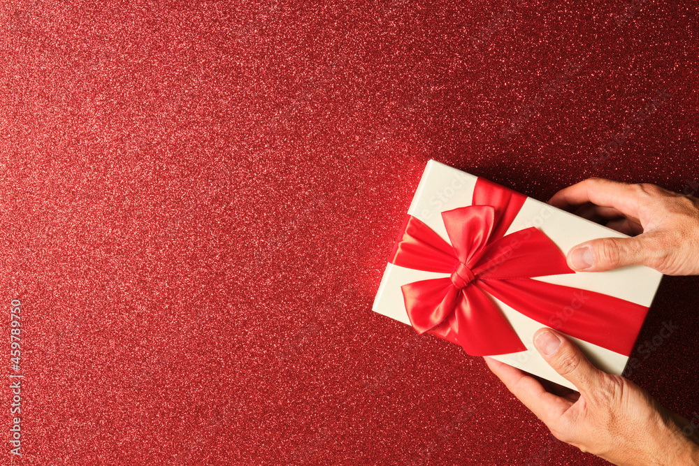 bright red background with christmas gift