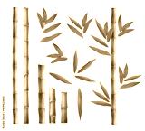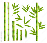 Green bamboo with leaves isolated on white background
