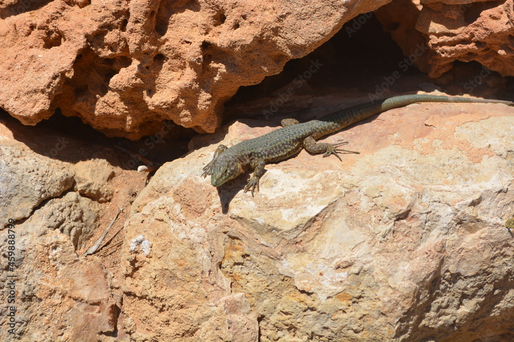 Eine Eidechse zwischen Steinen (Dracheninsel, Mallorca)