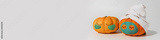 Pumpkin with facial mask and towel isolated on white background. Space for text mockup spa and Halloween concept