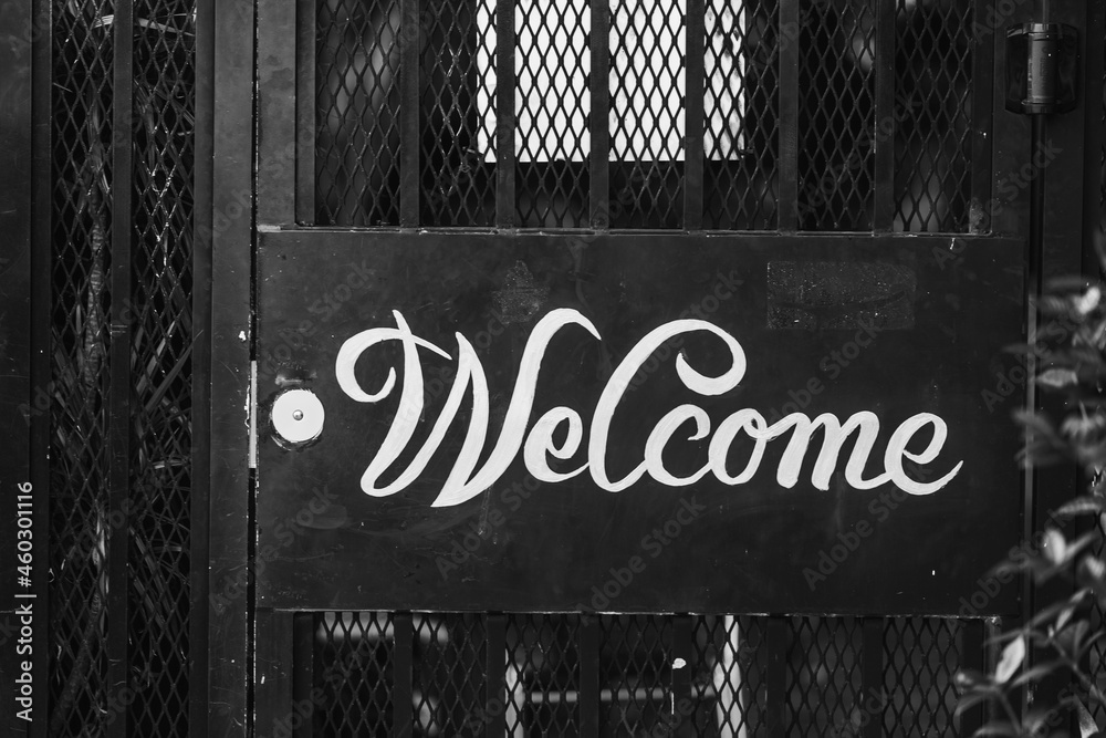 sign on the wall welcome black white