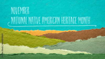 November - National Native American Heritage Month, handwriting against abstract paper landscape, reminder of historical and cultural event