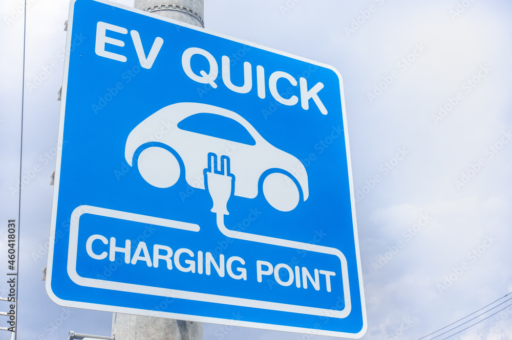 電気自動車の充電スポットの看板の写真