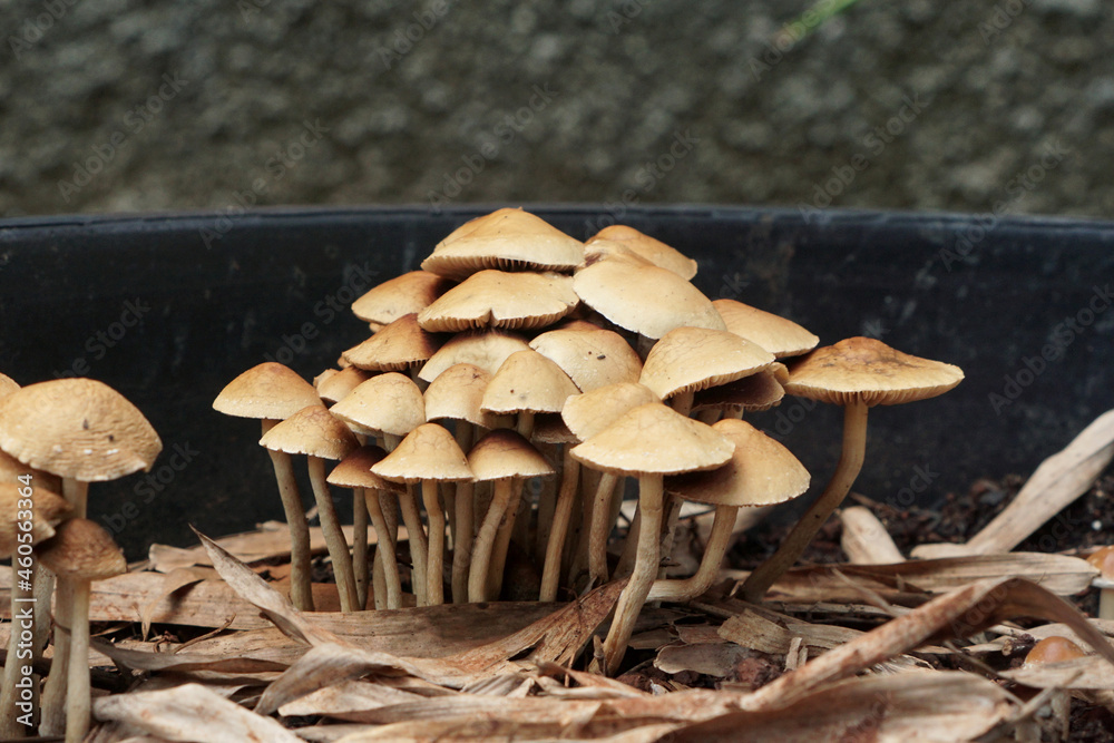 Wild mushrooms or fungus growing in moist soil