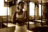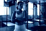 Sporty woman resting, having break after doing exercise.